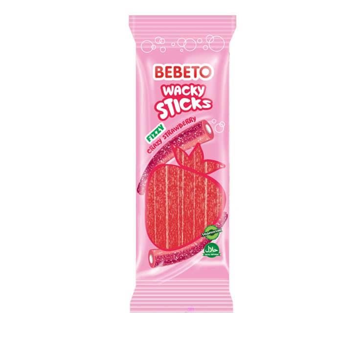 Bebeto Wacky Sticks Fizzy Strawberry 160g Bag Certified Halal (16017046)